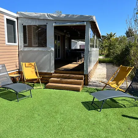 Mobil-home cosy 6 p climatisé à Hyères à 200 m de la mer dans camping 4 étoiles calme et familial